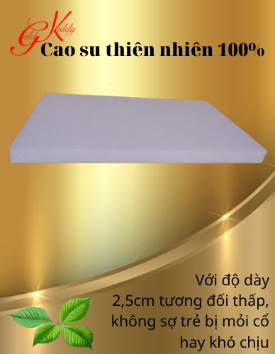 - Gối cao su trẻ em 2.5p (cm) được làm từ cao su non, thiên nhiên 100%, bảo đảm tính đàn hồi tốt, không bị lún trũng khi dùng trong thời gian dài.Tạo nên sự êm ái, mềm mại cảm giác mát mẻ, dễ chịu. Đặc biệt mềm, nhẹ ... dễ dàng cho bé gấp gọn mang theo khi đi học hoặc đi chơi xa
