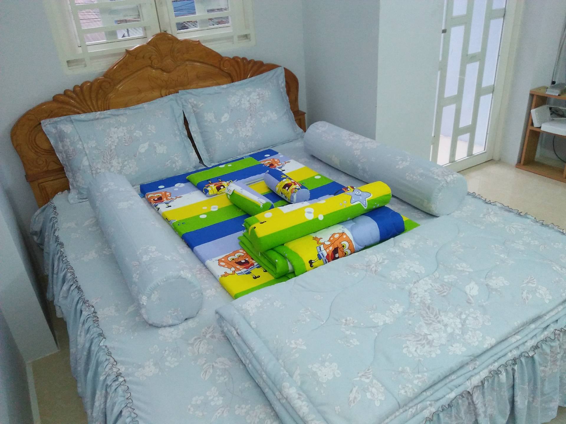 - Nếu đặt trẻ ngủ trên giường bố mẹ thì cũng nên tạo một khoảng không riêng cho bé, chẳng hạn như cho trẻ một chiếc nệm hoặc tấm trãi nhỏ .